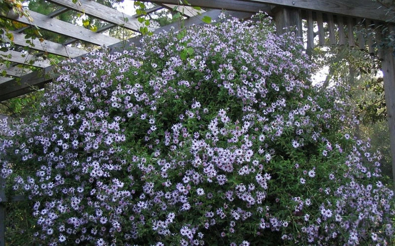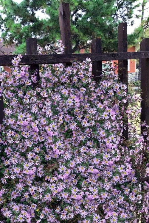 Growing up to 10 feet tall and wide, the Climbing Aster is ideal for use to climb and sprawl over fences, posts and trellises or as a sprawling plant in borders or on slopes. It is truly breathtaking in groupings or mass plantings. A fine addition to butterfly gardens, cottage gardens, native plant gardens and purple theme gardens.