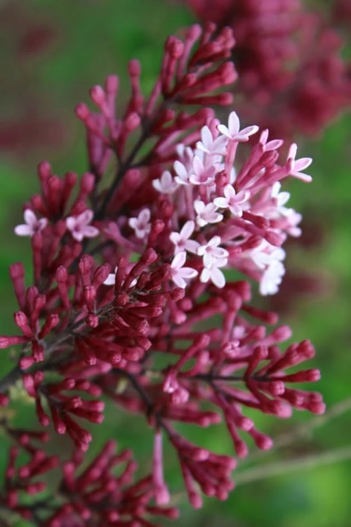Growing in a compact mound 4 to 6 feet tall and wide, Red Pixie Lilac fits into smaller garden spaces than its taller growing cousins and is a perfect choice for containers. It is ideal for use as a specimen, in groupings or as a natural hedge in larger landscape and flowering shrub borders. A fine addition to fragrance gardens, cut flower gardens, butterfly gardens, cottage gardens and pink color theme gardens.