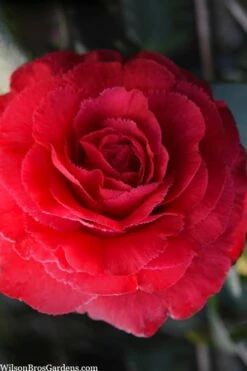 A sport of Rosea Superba, the Rosea Superba Sport Camellia is a relatively new and very rare selection featuring very large and absolutely gorgeous fully double vivid rose-red flowers of 5 inches or more in diameter. The flowers are backed by lustrous, deep green leaves on an upright rounded form up to 12 feet tall and 8 feet wide, The exquisite flowers are excellent for cutting and use in indoor flower arrangements, or just float one in a bowl of water.