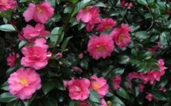 Shishi Gashira is without a doubt one of the finest fall and winter blooming Camellias on the market. From mid fall through mid winter, ShiShi Gashira produces an amazing plethora of gorgeous, bright rose-pink double flowers on compact plants growing to only 3 to 4 feet tall with a slightly wider spread to maybe 5 feet. Its compact size makes it an excellent choice for smaller garden spaces and in home foundation plantings.