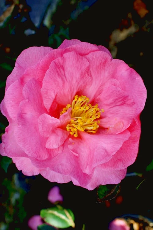 A profuse bloomer and truly spectacular fall blooming Camellia, Stephanie Golden is a semi-dwarf that produces LOADS of gorgeous, semi-double flowers with electric hot-pink petals surrounding a boss of bright yellow stamens. She has a dense, compact habit reaching 4 to 6 feet tall and wide, depending on pruning, which lends well for use in smaller garden spaces.