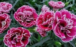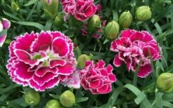 A superb pot Dianthus that is also great for garden beds, Super Trouper Magenta White is an upright selection that produces highly fragrant, fully double, gorgeous magenta pink with white edged blooms in spring and off and on throughout the season. It is an exceptional addition to any pink or white blooming garden and perfect to add some varying foliage for landscape with its blue-grey foliage. It also provides an excellent cut flower for bouquets! This one is cold hardy to USDA Zone 6a (-15 degrees F).